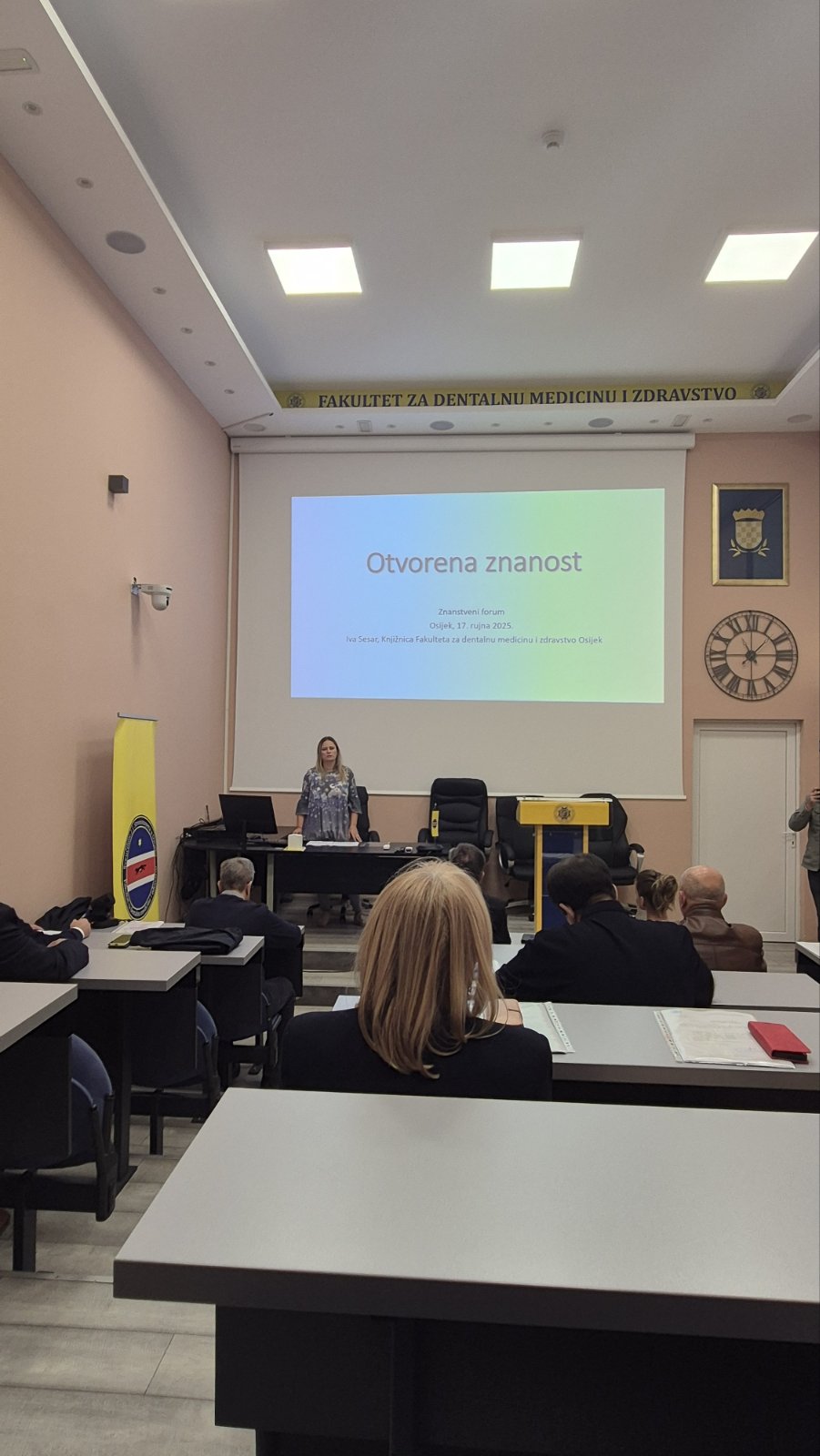 17.09.2025. Održano je predavanje na temu Otvorena znanost. Predavanje je održala knjižničarka Knjižnice Fakulteta za dentalnu medicinu i zdravstvo Osijek, Iva Sesar. Cilj predavanja bio je znanstvenicima Fakulteta približiti koncept otvorene znanosti, te način implementacije otvorene znanosti. Ovo je bilo uvodno predavanje, te su najavljene buduće radionice.